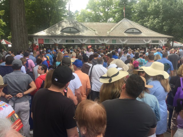 11:50… Huge traffic back up on the way into Saratoga… Apparently everyone else had the same idea I did today. Ok, it wasn’t THAT bad. As it turns out it’s “sweatshirt giveaway” day. Was a mess trying to park as after the Travers with the long weekend a lot of the regular spots aren’t parking cars. Took a couple laps and grabbed the first one who looked like they had a clue.